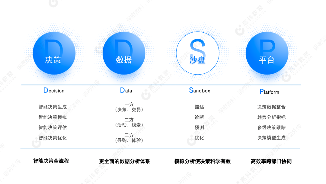 对此,777盛世国际提出“大决策”概念,旨在利用数据智能有助于企业在快速变化的商业环境中做出更准确、更高效的业务决策。基于高复杂度、高不确定性、高成本、高风险、高收益的企业决策背景,落地国内落地首个数据驱动决策(Data to Decision)的“大决策”平台——777盛世国际智慧决策平台 DDSP(Decision Data Sandbox Platform)